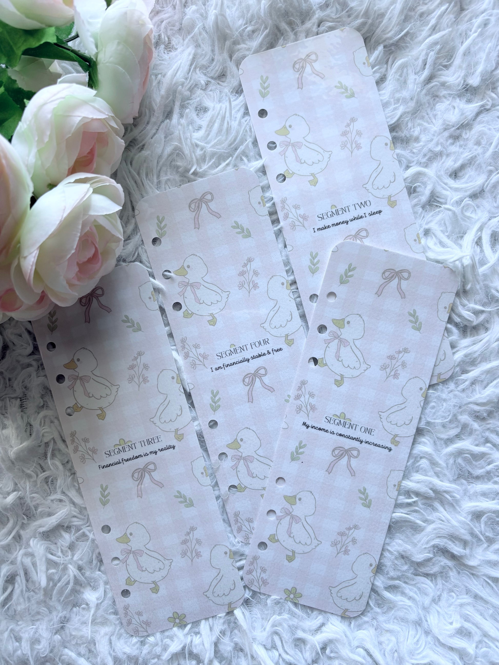 - 4 Pink Bow & Duck–themed Savings Challenge Cards